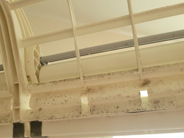 クーラー使用時はアルミフィンで空気が冷やされて結露が続くのでカビが増殖しやすい環境となります。