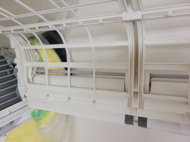 また、フィルター自動掃除の際は振動でフィルターの細かいホコリがアルミフィンにパラパラと落ちるのでホコリも溜まってしまいます。