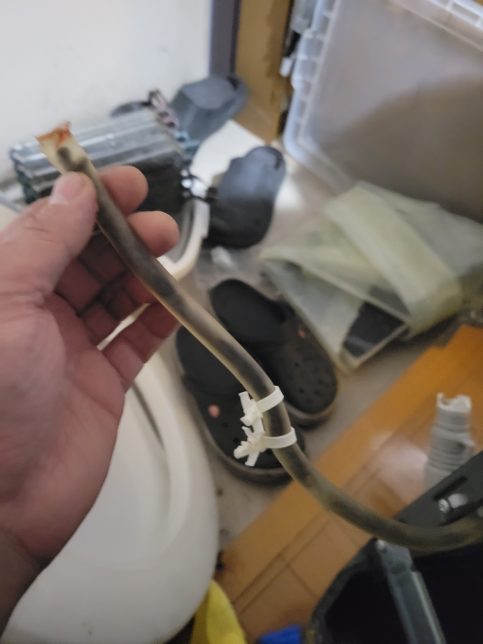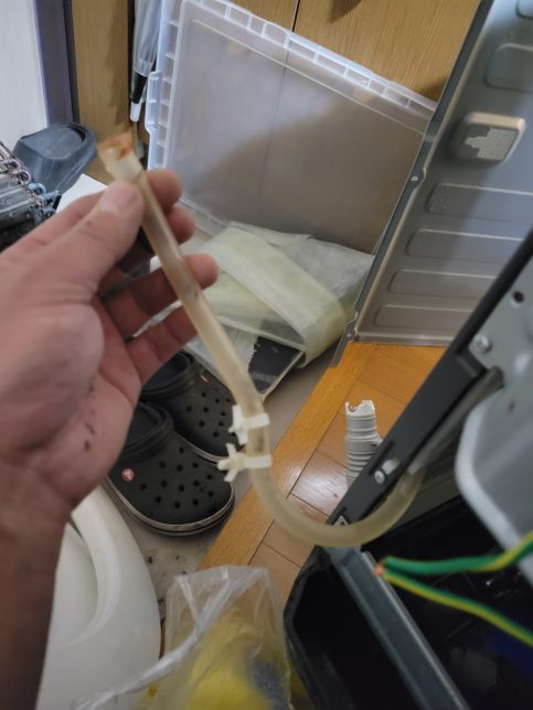 この細いホースが途中で上向きになっているので、汚れがさらに溜まりやすくなっています。