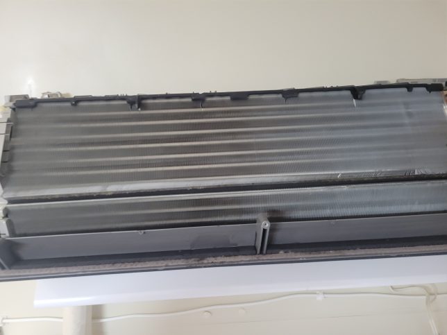 アルミフィンを完全に見通せる状態にしてから洗浄に移ります。