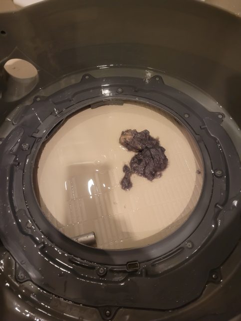 溜まったホコリは洗濯やすすぎの際に水分を含みますが、このカバー自体は回転しないので脱水しても水分が残り続けます。