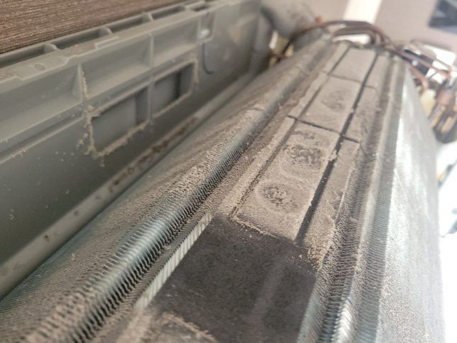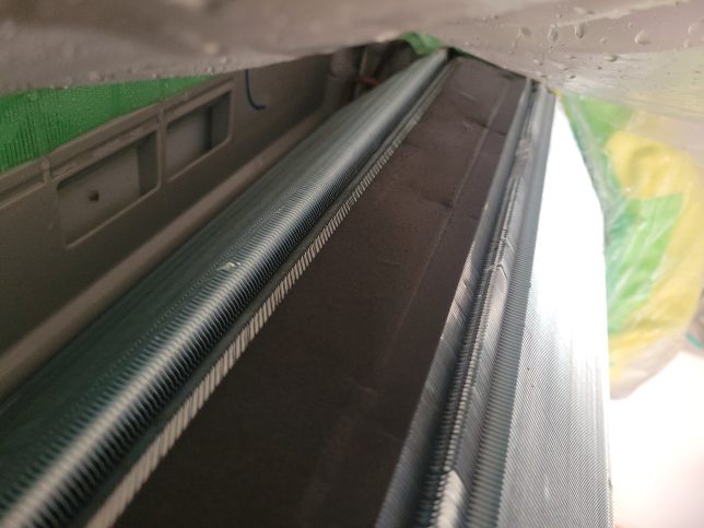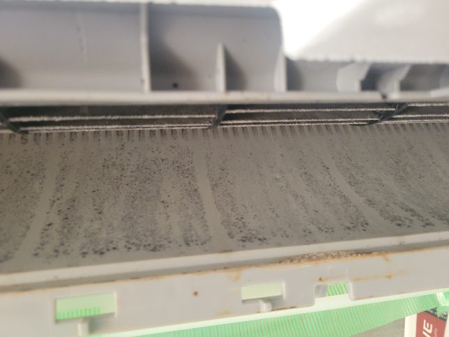 フィルター自動掃除の際は振動でフィルターの細かいホコリがアルミフィンにパラパラと落ちるのでホコリも溜まってしまいます。