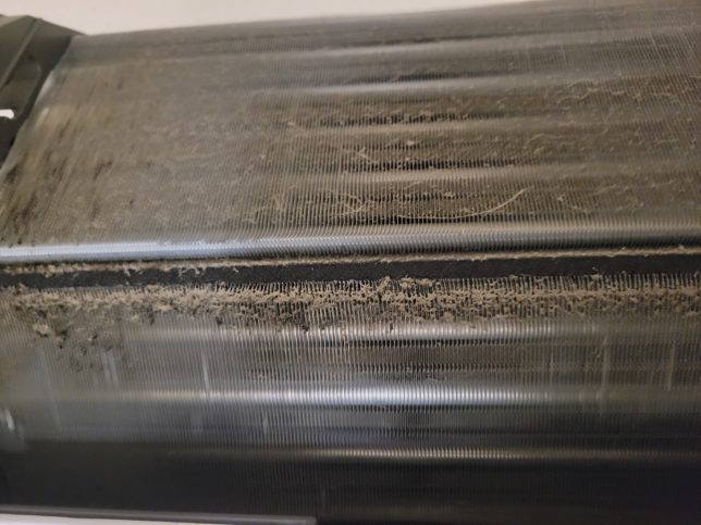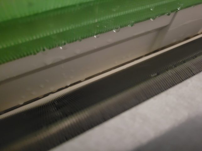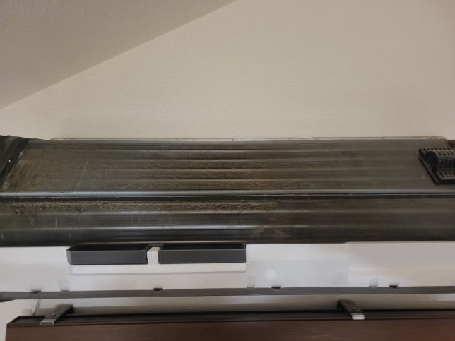 フィルター自動掃除の際は振動でフィルターの細かいホコリがアルミフィンにパラパラと落ちるのでホコリも溜まってしまいます。