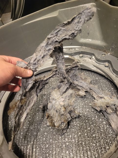 排水が滞ると湿気が残って乾燥しづらくなり、また乾燥の熱で糸くずフィルターのヌルヌル汚れのニオイが上がって衣服についてしまいます。