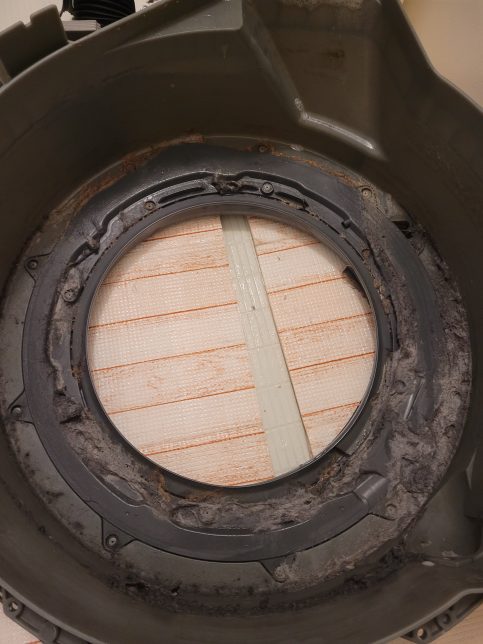 ドラム槽を覆っている脱水受けカバーの内側のホコリは乾燥時に湿気を出すので乾燥時間に影響します。