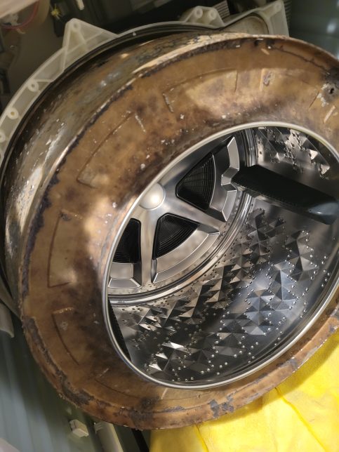 乾燥を使わない日も多いそうで、ドラム槽に溜まった洗剤カスがドロドロになっています。