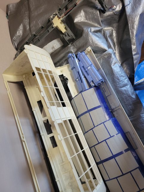アルミフィンの隅々まで洗浄するためにお掃除ユニットを外します。