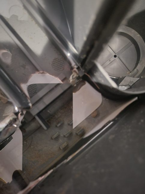 右奥の小さい穴の先が排水のホースに繋がっていて、そこが詰まると排水できなくなって水たまりになります。