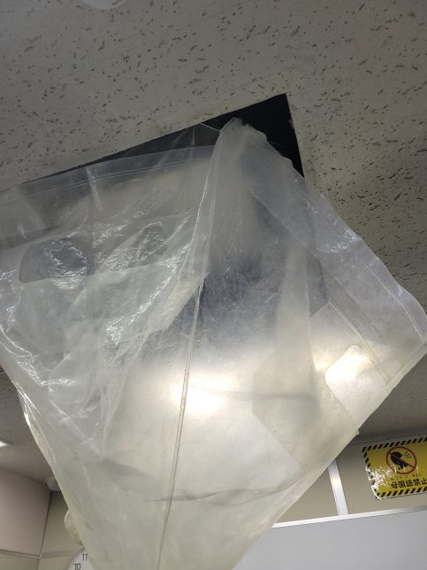 まずは事務所の机などエアコン周辺をビニールで養生します。