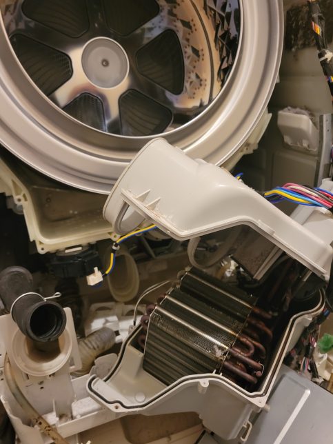 パナソニック製は上部にあるヒートポンプがこの機種は下側のボックスの中にありました。